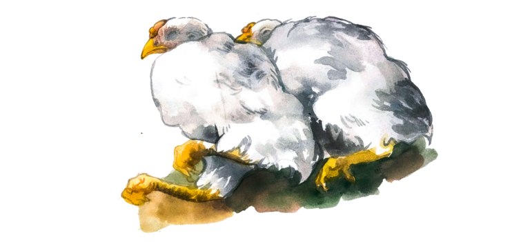 Заразное заболевание кур в возрасте 2–15 недель. Проявляется нарушением координации, водянистым поносом белого цвета, загрязнением перьев вокруг анального отверстия. Источником инфекции являются больные цыплята.