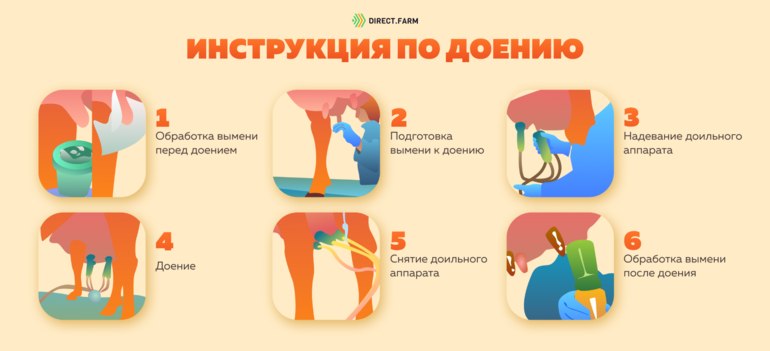 Доение считается стандартной процедурой, которая обеспечивает полное и качественное выдаивание каждый день. Если корову доят постоянно и в одно и то же время, то у животного раскрывается генетический потенциал продуктивности и минимизируются проблемы с выменем. При этом очень важно соблюдать основные правила обработки вымени и работы с доильным оборудованием:
