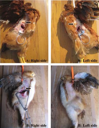 Что делает выполнение кастрации особенно трудным и опасным, так это то, что яички находятся внутри тела рядом с сердцем и другими основными органами. Рядом с яичками проходит важная артерия, размером всего с рисовое зернышко, которую можно легко разрезать или разорвать, что приводит к быстрой смерти птицы от кровотечения.