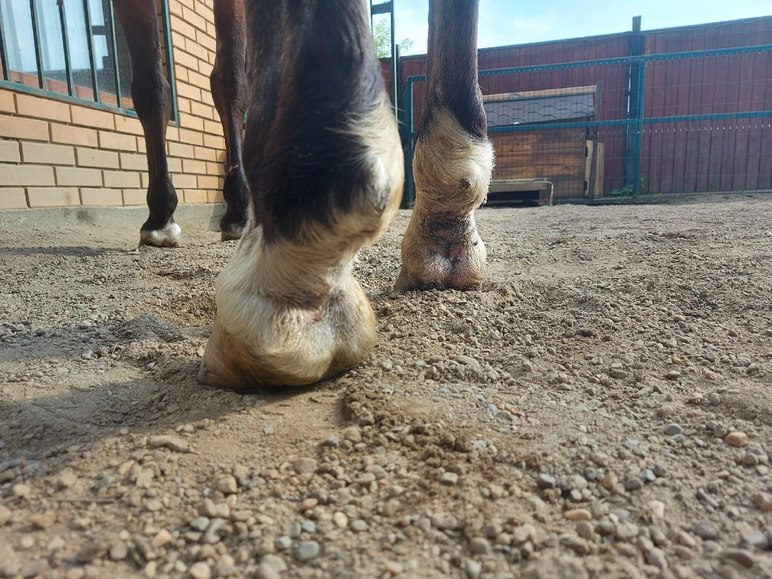 - ссадины, царапины в области пута могут провоцировать появление мокрецов. Что связано с тем, что кожа в данной области у лошадей имеет не густой волосяной покров и сама по себе достаточно нежная, а значит, страдает в полном объёме от любого воздействия. Даже на прогулке по сухому, чистому, травянистому пастбищу лошадь может поцарапать путо обо что угодно и в итоге, если вовремя не заметить возникшую проблему, мы опять же получим мокрецы в чистом виде. Стоит знать, что иногда травмы незначительные и не всегда мы их можем заметить, поэтому следует использовать мягкие щётки для очищения волосяного покрова пута, как на грудных, так и на тазовых конечностях.