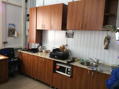 1. Для организации большего места для хранения самых разных инструментов, оборудования, папок и прочего, включая новые шприцы, перевязочный материал, различные пробирки и диагностикумы – это шкафы кухни. Можно заказать не дорогие или даже купить б/у кухонные шкафы. Принцип такой, что по стенам вы развешиваете шкафы, затем устанавливаете столешницу, которая выполняет роль рабочей поверхности стола для специалистов, под столешницей устанавливаете нижние шкафы кухни, но теперь уже вашей аптеки, в которых можно расположить, как канистры с дезстредствами (обратите внимание, что для их хранения необходимо темное место, см. инструкцию!), так и корзины для сбора бытовых отходов, пластика или стекла.