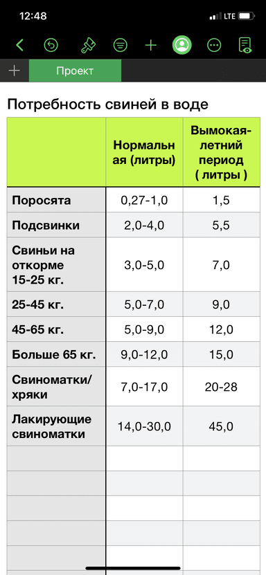 Также ниже приведена таблица Норм потребления воды для разных групп животных в зависимости от температурных условий.