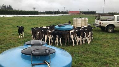 молоко телятам развозится в молочной тялежке, предварительно подогретое.