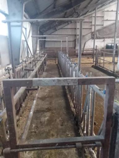 Да, кроме станка необходим прогон. Он очень сильно зависит от типа двора, расположения. Например дешевым вариантом является установка на петли дополнительных перекрытий (у нас железные). На рисунке они обозначены красным (рис.1). По мере необходимости закрывается нужная часть двора/секции. На дверь наварены цепи и наконечник, на который фиксируется цепь.