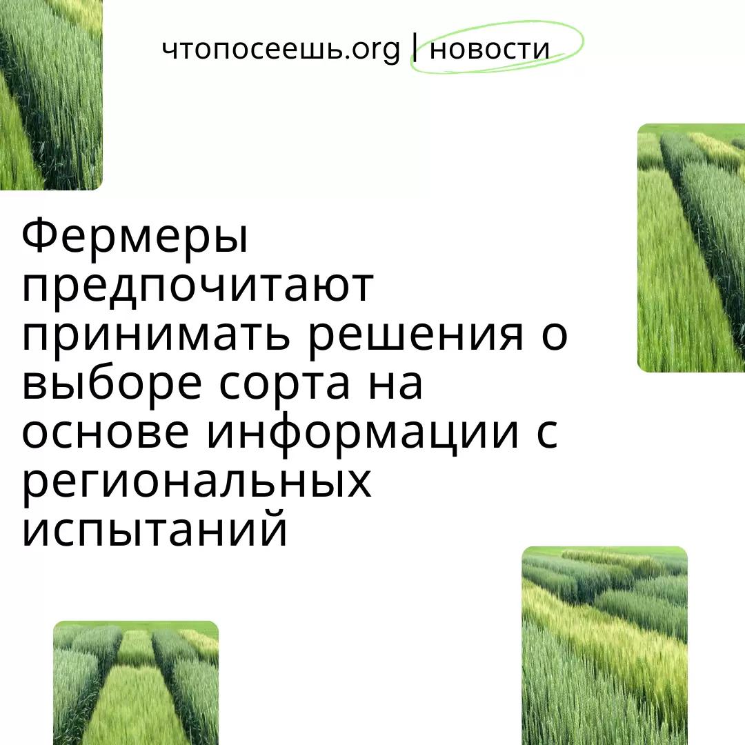 Из опроса также ясно, что, хотя сельхозпроизводители при принятии решения о выборе сорта / гибрида пользуются информацией из различных источников, включая независимые организации, селекционеров, агрономов и продавцов семян, подавляющее большинство (93%) с уверенностью предпочли бы выбирать сорт на основе того, что они увидели или узнали на сортоиспытании лично.
