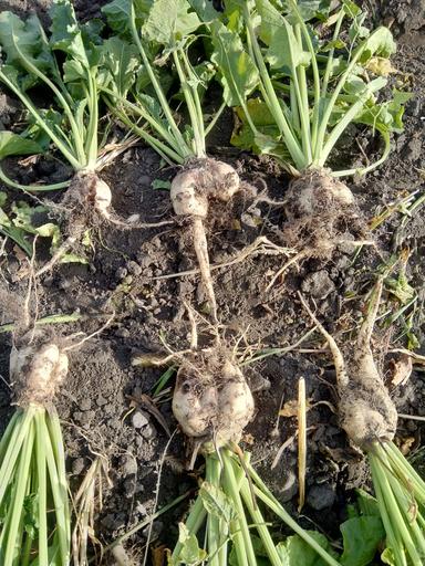 в качестве примера публикую два фото, разница по высоте свеклы, густота есть, сев,всходы можно сказать идеально (была публикация "идеальный сев") НО пошли корневые гнили и результат к уборке , видно на фото (огромная разница в развитии) соответственно и потери( при том самой крупной свеклы). гибрид Рекордина-очень стойкий к гнилям, пропал центральный корень но отбил новые боковые, а в целом пережил и дал 480ц/га,но дигестиия упала до 16.7-17.5%.