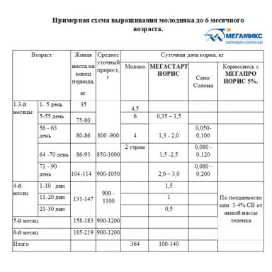 концу 4-го месяца телята переходят 100% на миксерную кормосмесь. (⃣ таб.➡)