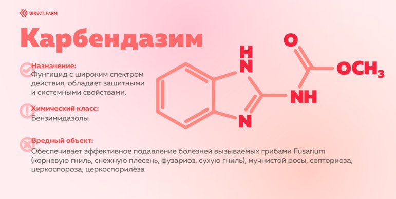 ⏺ Способ применения: препараты с карбендазим используют при обработке семян, опрыскивании и внесении в почву. Характеризуются хорошей прилипаемостью;