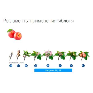 - По материалам H. Aldwinckle, J. Norelli (“Evaluation of Kasumin for control of fire blight”), в 2-летнем опыте на 12-13-летней яблоне Айдаред на подвое M7 препарат продемонстрировал высокую эффективность.