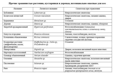 О прочих токсичных для коз растениях – см. таблицу ниже, в иллюстрациях.