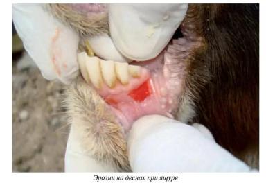 (венечном) ремешке, в межпальцевом пространстве, на мякишах. Далее их стенки разрываются, появляются эрозии, которые, в свою очередь, могут вторично обсеменяться другими патогенами. Хромота может быть ярко выраженной, при этом козы неохотно двигаются или проводят больше времени лежа. Небольшие эрозии могут развиваются в ротовой полости: чаще всего – на беззубом валике верхней челюсти, языке, реже на деснах, губах, твердом небе, слизистой оболочке щек. Они обычно довольно неглубокие и могут зажить в течение 2-3 дней. Из-за этих поражений усиливается слюноотделение, животные издают характерное причмокивание, отмечается неприятный запах изо рта.