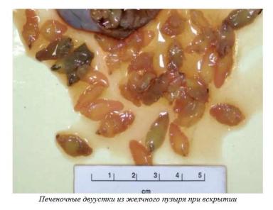 Жизненный цикл. Взрослые двуустки заселяют желчный пузырь и желчные протоки, при отсутствии лечения один паразит может прожить до 4 лет. Яйца сосальщика выносятся с желчью в кишечник, проходят его и с навозом попадают на пастбище. Следующая стадия развития, личинка мирацидий, проникает в тело промежуточного хозяина – малого прудовика