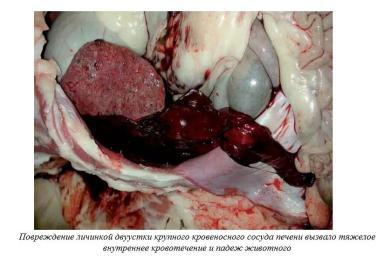- Острое. Встречается при большом числе личинок двуусток, проникающих через капсулу печени, что часто вызывает кровотечение. У животных отмечаются анемия, боль в животе, слабость. В тяжелых случаях заболевшие козы могут погибнуть. Заболевание чаще всего встречается в конце лета или начале осени.