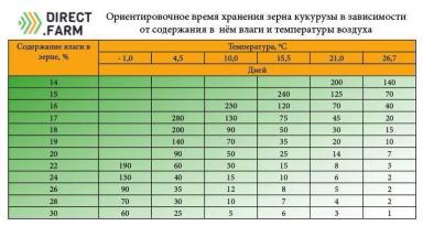 Вывод: необходимо консервировать зерно кукурузы. Для определения оптимального процента содержания влаги в зерне агрономы рекомендуют опираться на таблицу (прикреплена ниже).