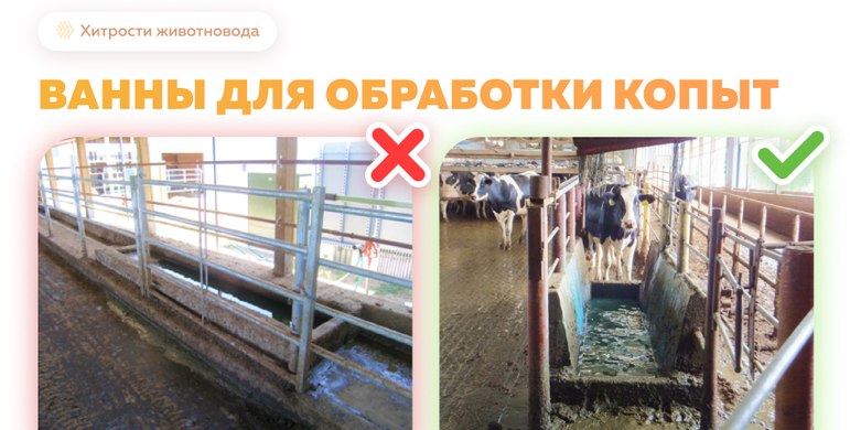 В коровнике с доильным роботом размещают ванну на выходе после дойки. В центре коровника с роботом расположение ванны проблематично, и, возможно, придется использовать скотопрогоны для регулярного прохода коров через ванну.