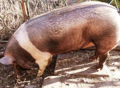 Масть красная, на уровне лопаток и передних конечностей имеется неширокая белая полоса, щетина довольно густая, жесткая.