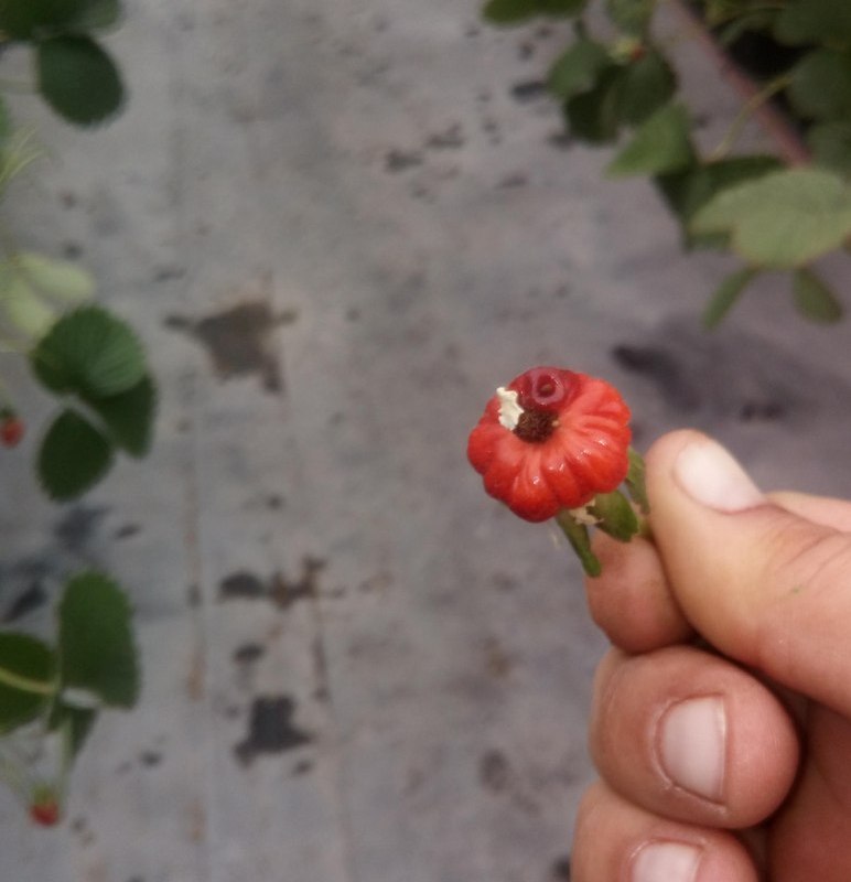 Добрый день! Очень похоже, что повреждение ягоды вызвано вредителем - трипсом. Это маленькое насекомое, которое живет в цветке. После его деятельности деформируется ягода.