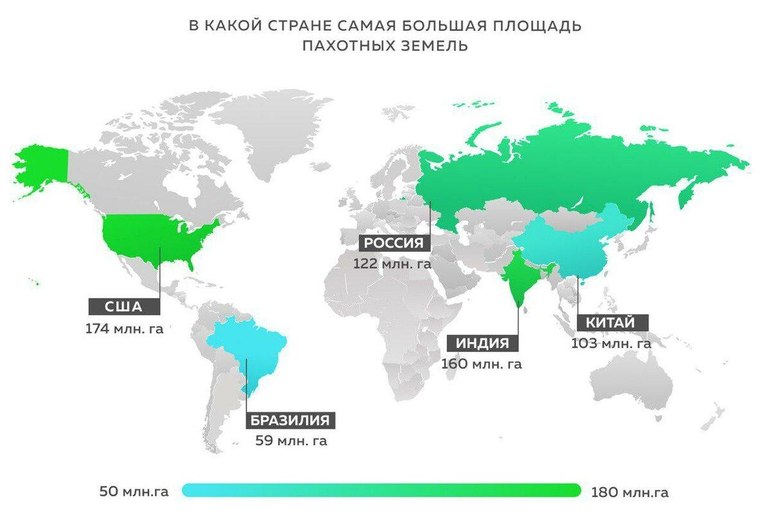 А для России это вообще стыдно имея такие огромные площади, возделывать только 7,1% . при том что Индия 48,7% а США 17,7% от всех своих земель.