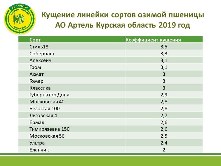 Осеннее кущение сортов озимой пшеницы.