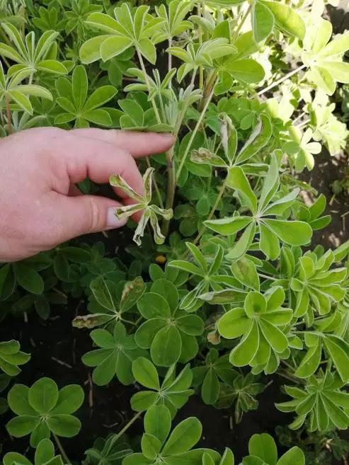проблемы на люпине.очаговое поражение: с начало увядание, затем усыхание (с краев листа) с начало нижних а потом и верхних листьев.две недели назад отработали (профилактика) фунгицид Амистар-Экстра+инсектицид (поймали "окно" между дождей) весь май проливные дожди, сейчас три дня жара 28-32.