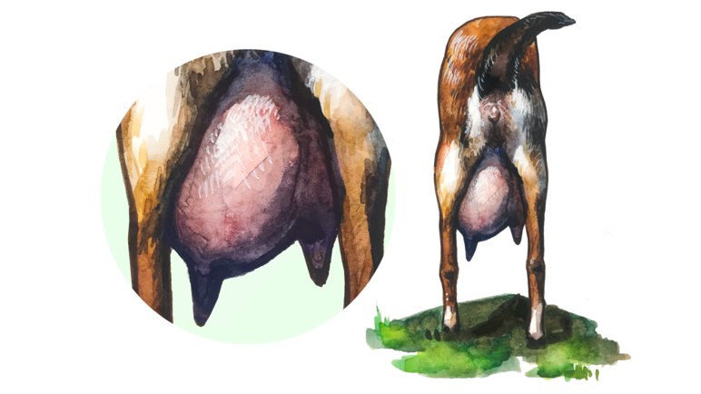 - Генетические факторы: отвисшая форма вымени, слишком длинные соски, короткие ноги, изнеженная конституция.