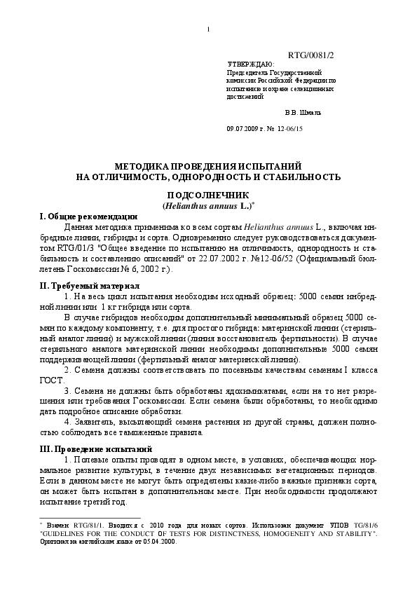 Методика испытания на отличимость, однородность и стабильность подсолнечника