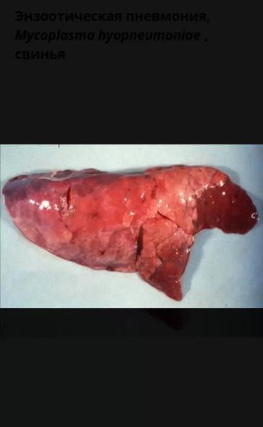 Mycoplasma hyopneumoniae является распространенной причиной пневмонии у свиней во всем мире. Mycoplasma hyopneumoniae вызывает микоплазменную пневмонию у свиней. Иногда ее называют энзоотической пневмонией. Специфичный для хозяина плеоморфный организм, у которого отсутствует клеточная стенка. Ее можно культивировать в специально подготовленных средах. Этот организм быстро инактивируется в окружающей среде и дезинфицирующими средствами, но может дольше сохраняться в холодную погоду. Микоплазменная пневмония является хронической инфекцией свиней. Заболевание характеризуется постоянным сухим кашлем и нарушением роста. Инкубационный период 10-16 дней.