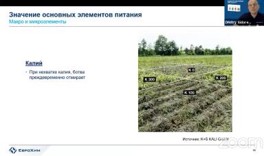 - Калий. Продемонстрировали наглядное фото, где калий вносился с разными дозами, или не вносился совсем. Дополнительное внесение калия повышает урожайность.