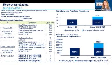 Далее Мария для картофеля и привела результаты опытов схем питания: