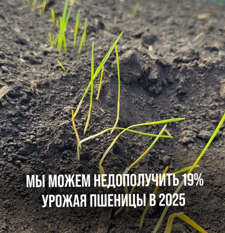 МЫ МОЖЕМ НЕДОПОЛУЧИТЬ 19% УРОЖАЯ ПШЕНИЦЫ В 2025г. ИЗ-ЗА ПОЧВЕННОЙ ЗАСУХИ