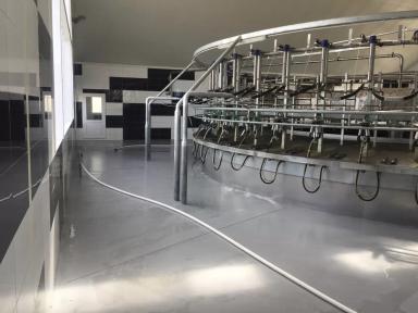 На первый взгляд кажется, что полы в доильных залах — одна из последних проблем, которая должна вызывать беспокойство у производителей молока. В прошлом популярным напольным покрытием в доильных залах были бетонные плиты, рассчитанные на то, чтобы выдерживать большие нагрузки доильного цикла. К сожалению, обыкновенный бетон без упрочнения не является идеальным долгосрочным решением для безопасных и гигиеничных полов. Молочная кислота воздействует на незащищенный бетон, как и химическая агрессивная среда. Со временем поверхностный слой будет нарушен, появятся более крупные частицы бетонного раствора, что только ускорит разрушение. Ускоряет этот процесс и постоянное воздействие термического удара от санитарных смывов горячей водой.