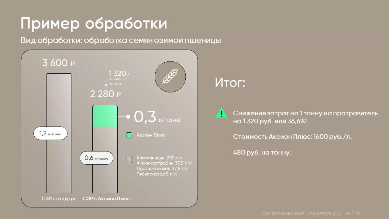 Такая обработка обеспечила равную эффективность защиты семян, снижение фито токсичности и снижение затрат на 36,6%.