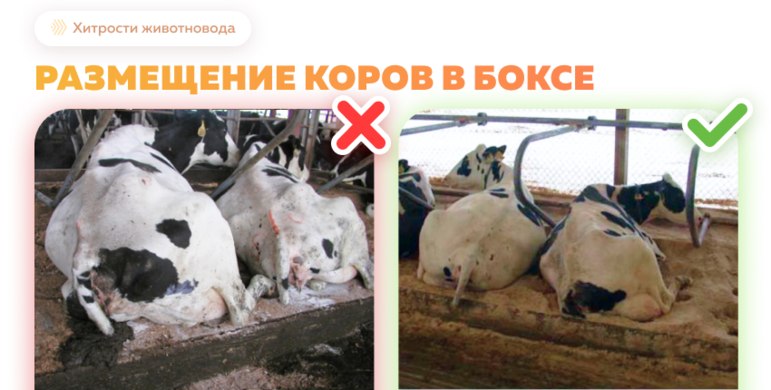 Боксы для коров должны быть соответствующего размера, чтобы животное могло отдыхать в спокойствии и без препятствий движению другим коровам, выводить переднюю конечность вперед, когда встает и ложится.