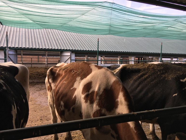 После отела (в первый период лактации, дают около 30 кг молока) некоторые коровы очевидно похудели... Будем проверять на кетоз и ацидоз, а также балансировать рацион по энергетической составляющей.