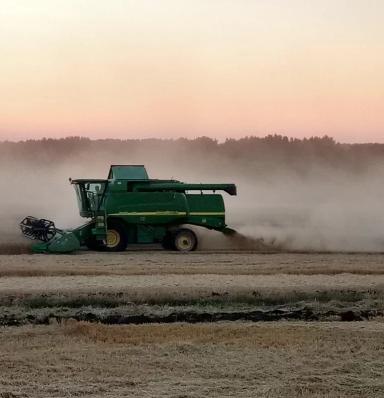 Выехали первый день, озимая пшеница сорт Льговская-4 , (предшественник сах.свекла) влага 15-16.5%, урожайность 45-48ц/га (на вскидку). фото "ОЛЕНЕВОДЫ" пошли (Джон Дир 9640 2007 -2008 год выпуска: 9660 2006 года), наработка в среднем 1000 га за сезон.вот такие "звери"...