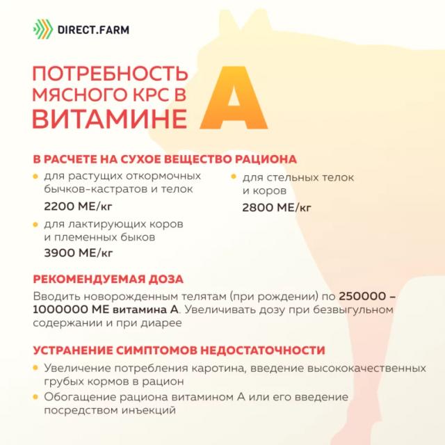 Эти рекомендации особенно актуальны для середины и конца зимнего периода после предшествующего ему кормления зеленой массой, поскольку к этому времени запасы каротина в организме исчерпываются. Также при круглогодичном кормлении силосованными кормами обеспеченность животных бета-каротином должна быть под постоянным контролем.