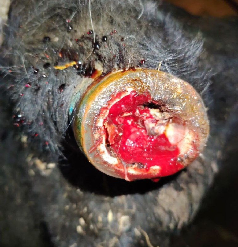 Удаление рогов следует проводить до того, как этот участок прикрепится к черепу. В этом случае процедура намного проще и приводит к значительно меньшему кровотечению.