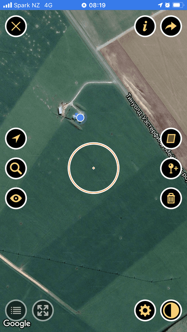 Объехав участок, нажмите кнопку Закончить измерение и на Вашем экране отобразится результат в гектарах.