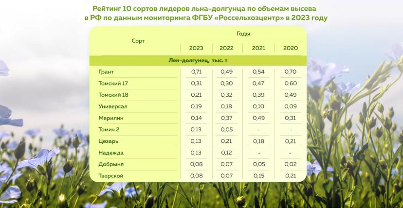 Неизменным лидером за последние годы остаётся сорт Памяти Кунакбаева. Так же в Топ 10 сортов по объемам высева попал сорт Зилант вытеснив сорт Тантана.