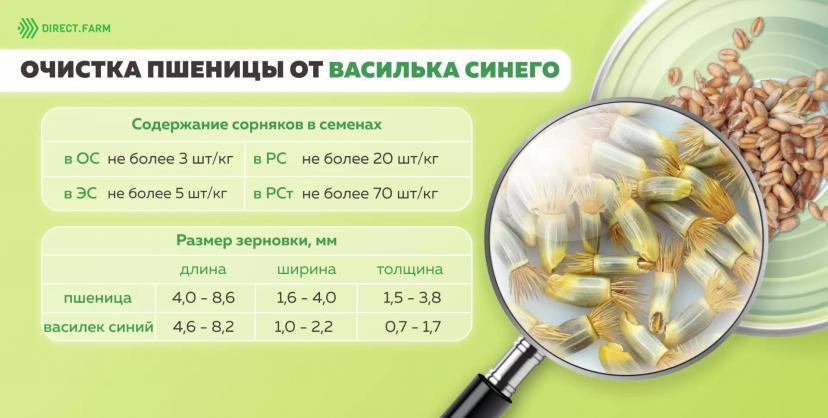 Семена гречихи обычно бывают засорены семенами горца вьюнкового, мари белой, редьки дикой, вьюнка полевого. Большинство семян этих сорняков отделяются от семян гречихи решетами без применения триера.