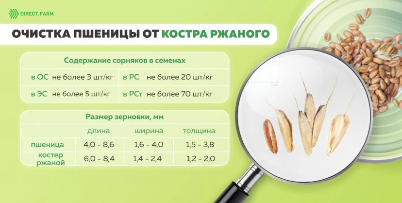 Содержание семян сорняков в репродукционных семенах (РС) пшеницы не более 20 шт/кг, в репродукционных семенах на товарные цели (РСт) не более 70 шт/кг.