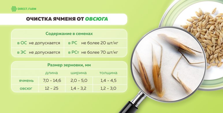 По российским стандартам в зерне ячменя 1 и 2 класса овсюга допускается не более 1%, 3-го класса в пределах нормы общего содержания сорной примеси - не более 5%.