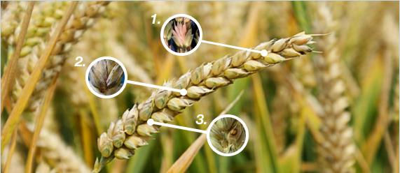 Наибольший эффект для зерновых достигается при обработках фунгицидами в конце колошения – начале цветения (2–4 дня перед цветением).