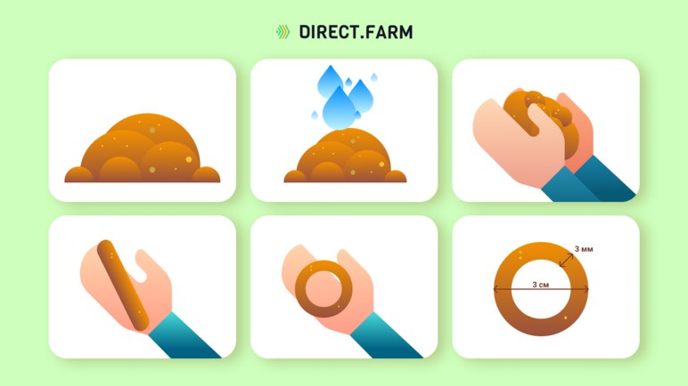 🔹 По тому, как сворачивается колечко, можно судить о механическом составе почвы (см. прикрепленные фото):