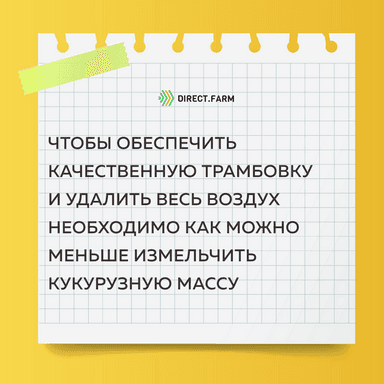 Для того, чтобы обеспечить качественную трамбовку и удалить весь воздух необходимо как можно меньше измельчить кукурузную массу.