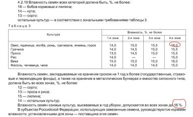 Закладывать на хранение можно только кондиционные семена соответствующее ГОСТ Р 52325-2005. Влажность семян зерновых при этом не должна превышать 14-16%.
