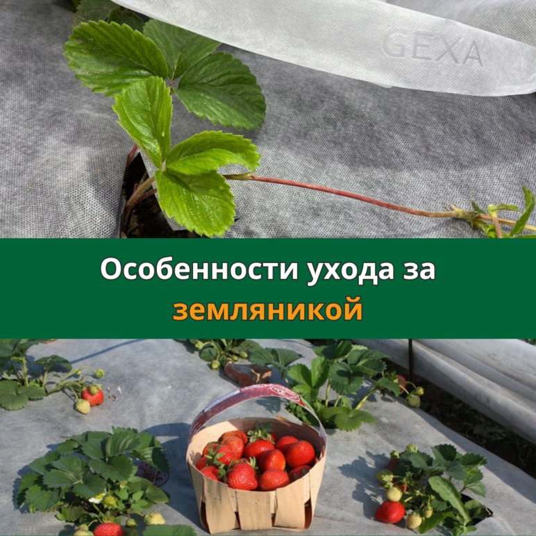- Мульчирование и укрытие: в комплект для земляники садовой от ТМ «Агротекс» входят бело-чёрная нетканая мульча и белый укрывной материал. Мульча сохраняет влагу, подавляет рост сорняков, предотвращает перегрев корней, защищает цветоносы и плоды от соприкосновения с почвой, а также от появления серой гнили. Укрывной материал может пригодится не только для зимней защиты растений, но и для укрытия во время возвратных заморозков. Именно он сохраняет цветоносы, которые у культуры образуются осенью.