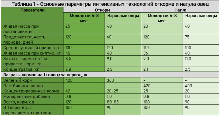 Интенсивность откорма измеряется величиной среднесуточного прироста живой массы. Установлено, что чем интенсивнее откорм, тем ниже затраты корма на 1 кг прироста. Так, при суточном приросте массы ягненка: