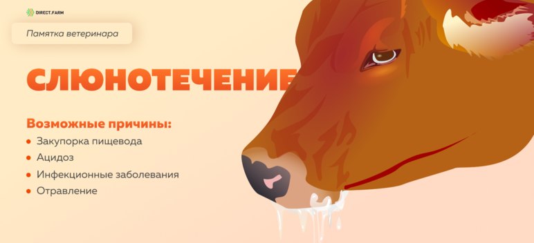 Крупный рогатый скот производит около 110-180 л слюны в день, которая играет ключевую роль в буферизации pH рубца. Чрезмерное слюноотделение говорит о нарушениях в организме животных.