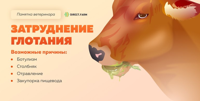 - Паралич мускулатуры языка и жевательных мышц, вызванный ботулизмом — коровы могут потреблять корм или воду, зараженные вирусом Clostridium botulinum, часто встречающимся в тушах павших животных.